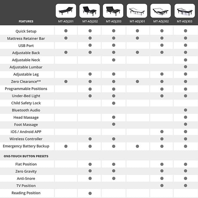 Rest easy with our 200 Series Adjustable Bases. With our Dormiolite collection, you'll enjoy a wide variety of options for a bed that moves and adjusts to your desired position. Whether you're looking for a simple upright back option or multiple presets, this is the bed base for you. Note: Feature sets may vary on different models and sizes.
