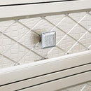 ADELINA Server, 54"W X 18"D X 36"H, 169.4lbs. Shimmering from its tasteful mirror tile accents, this dining set proposes glam to any home that welcomes it. Find luxury in this server, which provides easy access to your wines and multiple full extension drawers. Light bounces beautifully off the subtle warmth of the finish, topping off this chic ensemble.