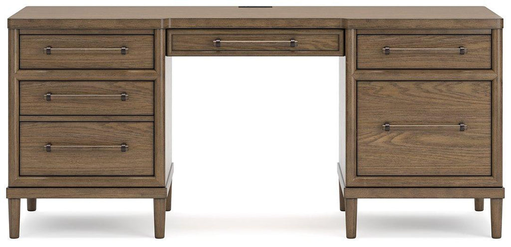 Give your mid-century modern decor that finishing touch with this home office desk and bookcase. Spacious drawers with unique wooden drawer pulls enhance the design with stunning style. This set takes minimalism to the max.